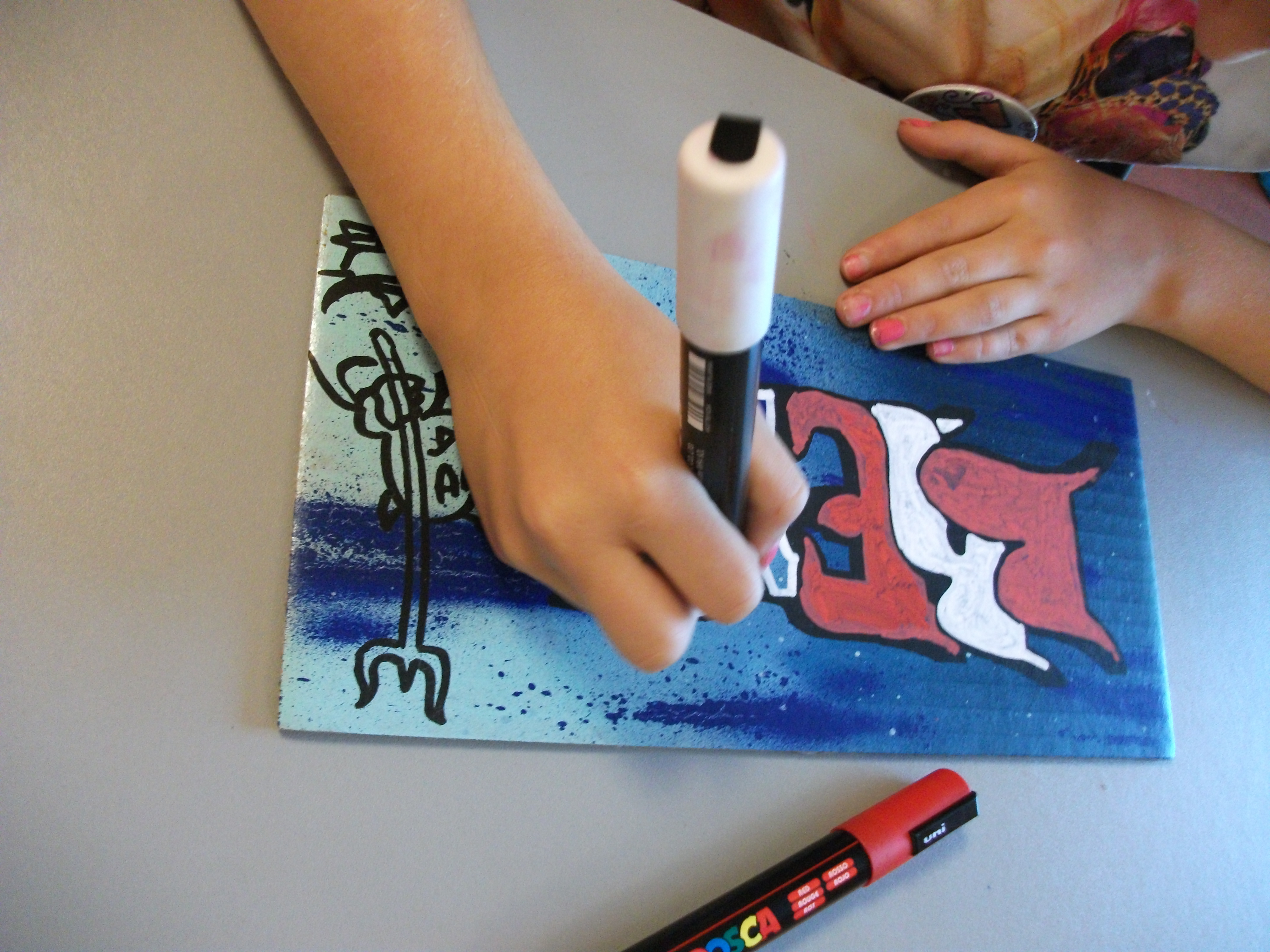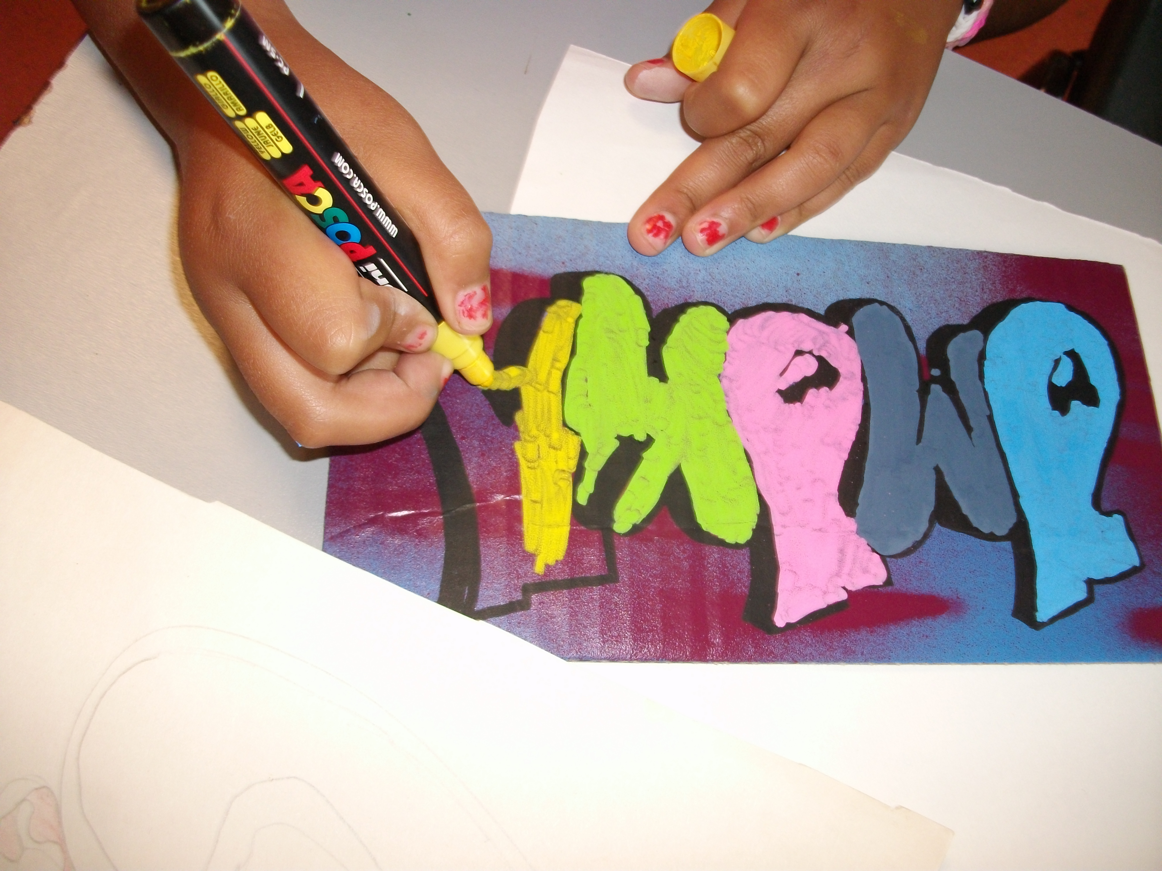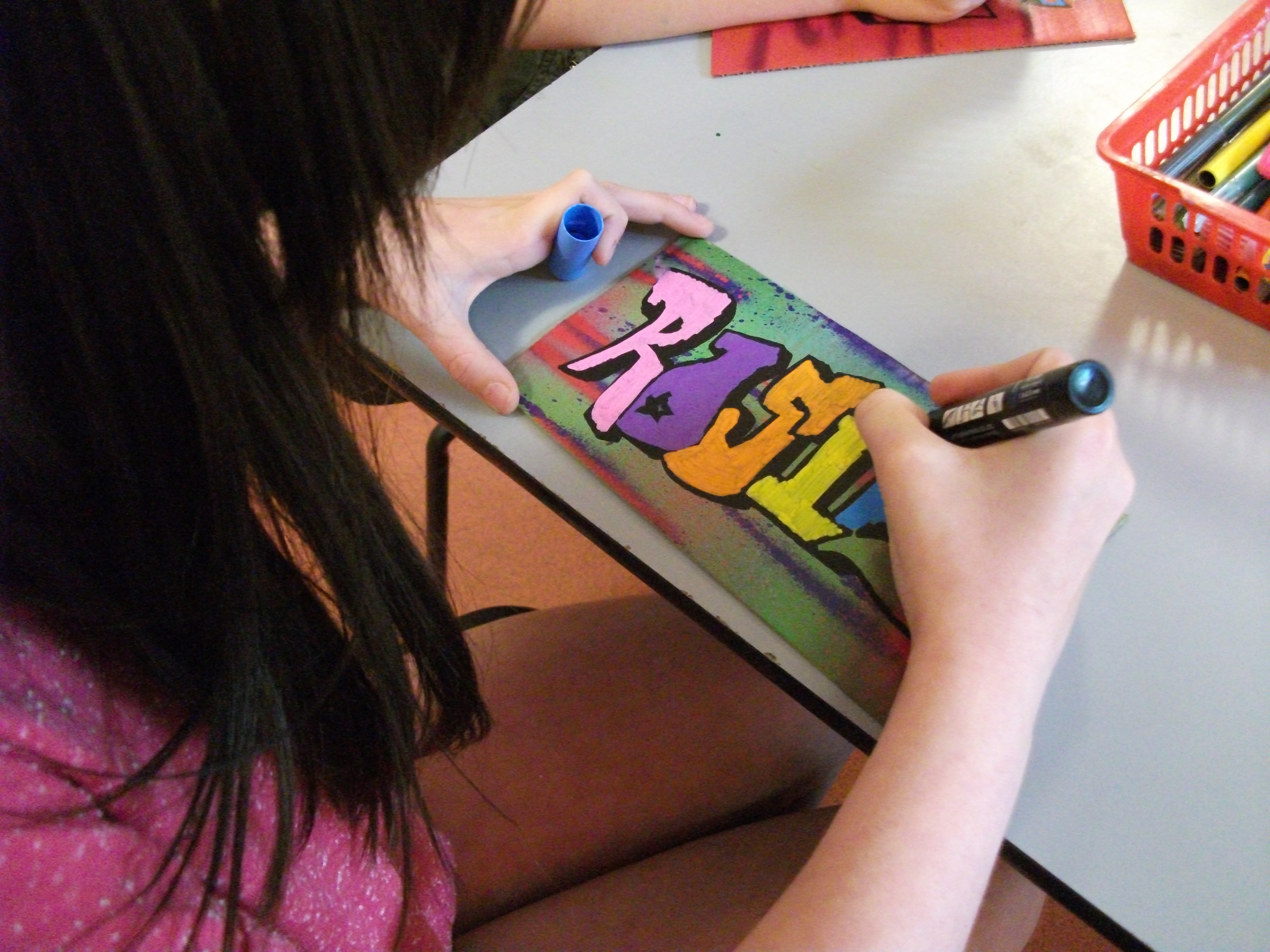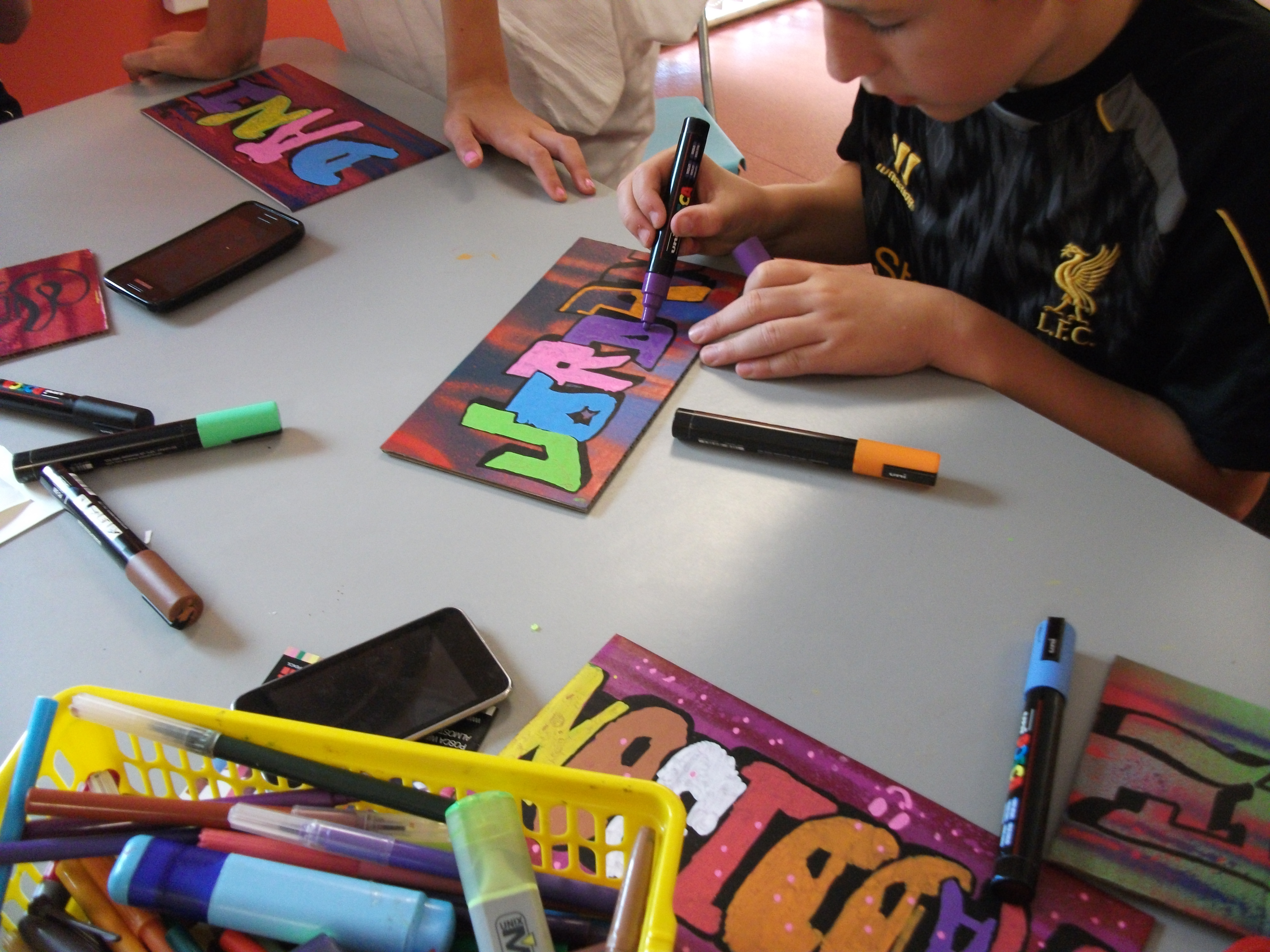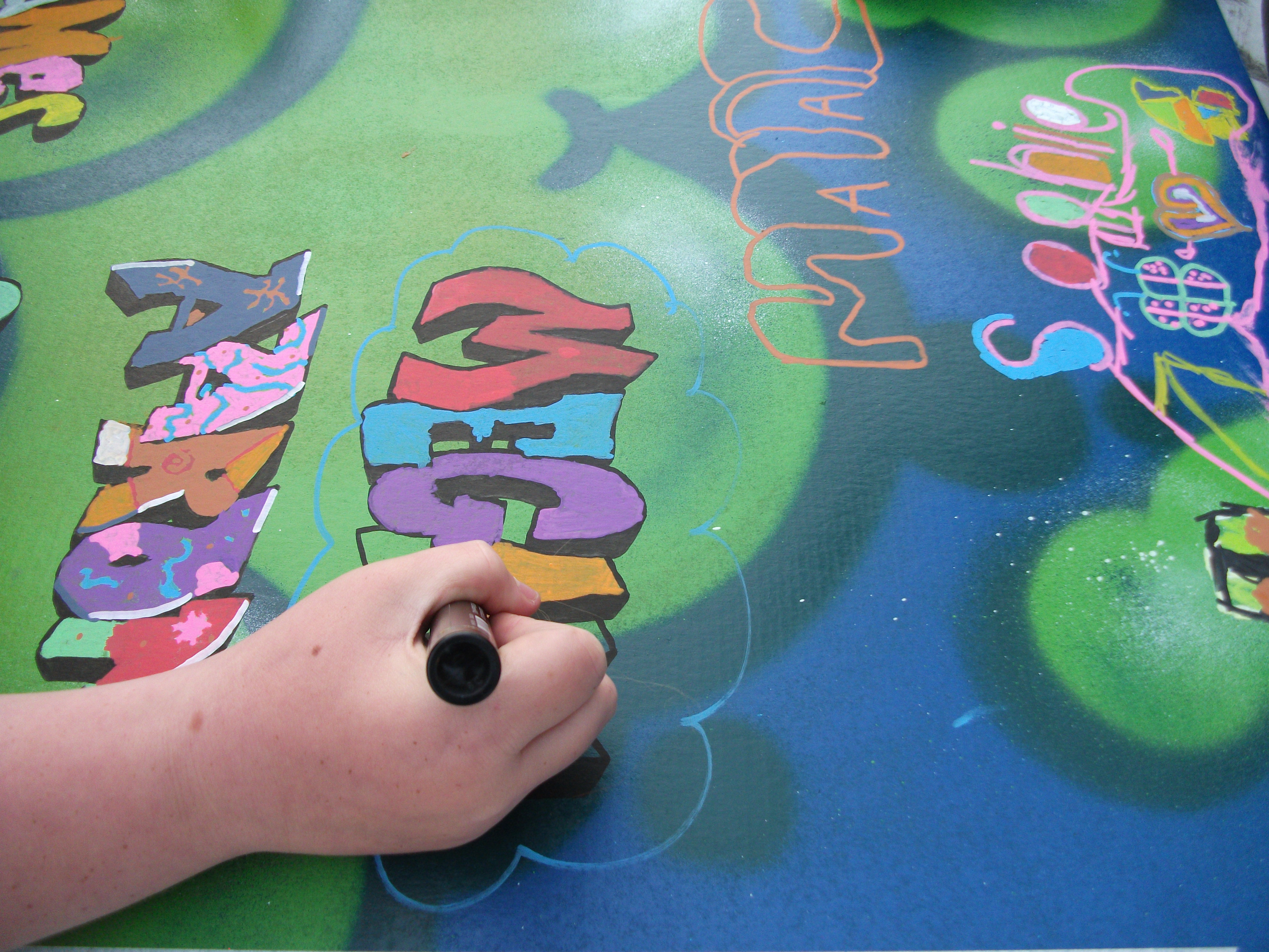 Boz worked with the two teams while they built the machines ready for racing on day three. while Mr Dee helped design and paint the custom graffiti on the finished karts.