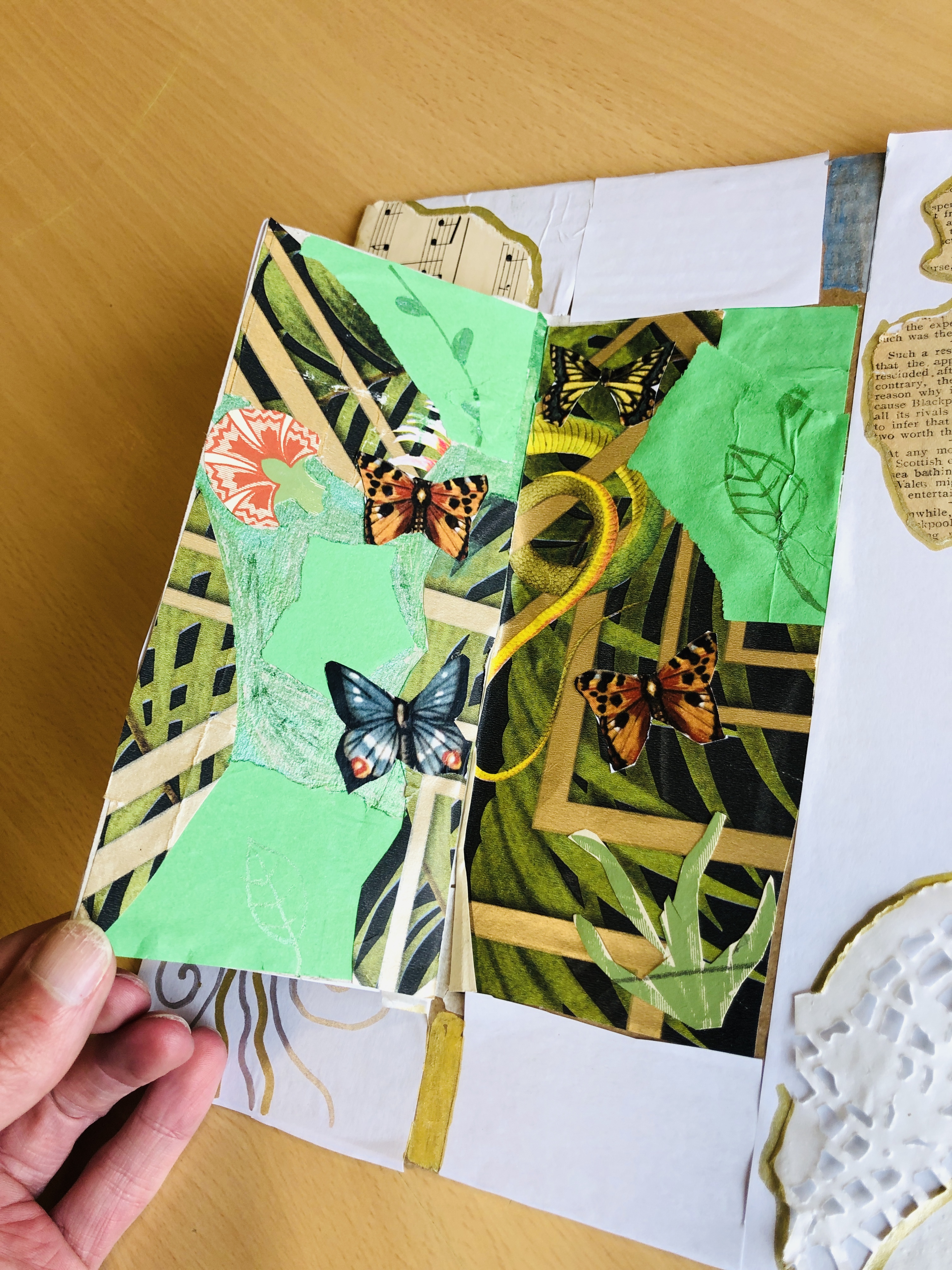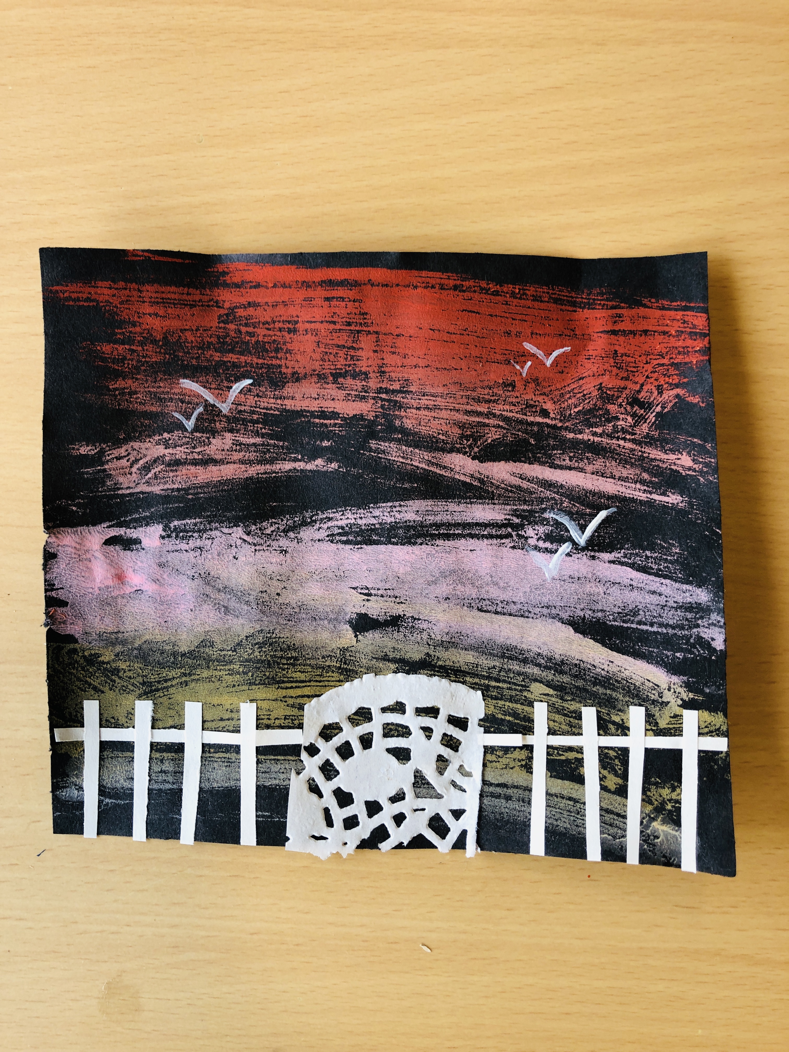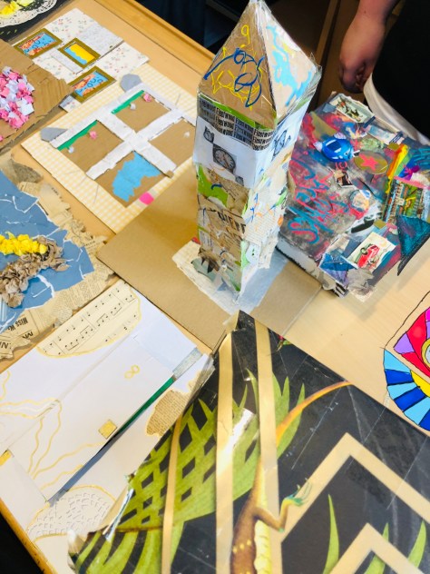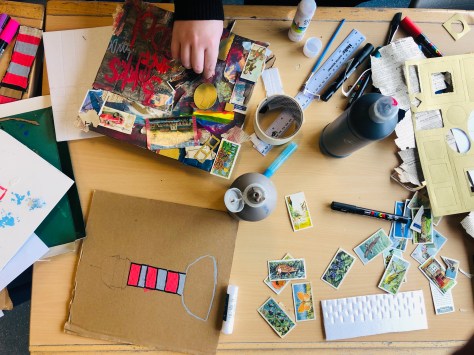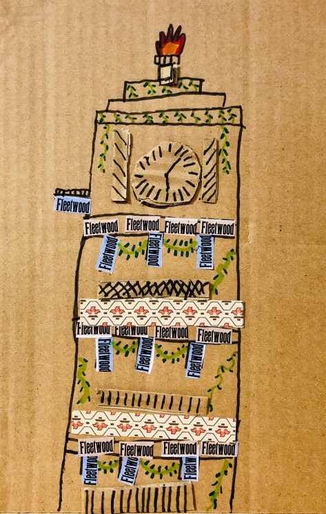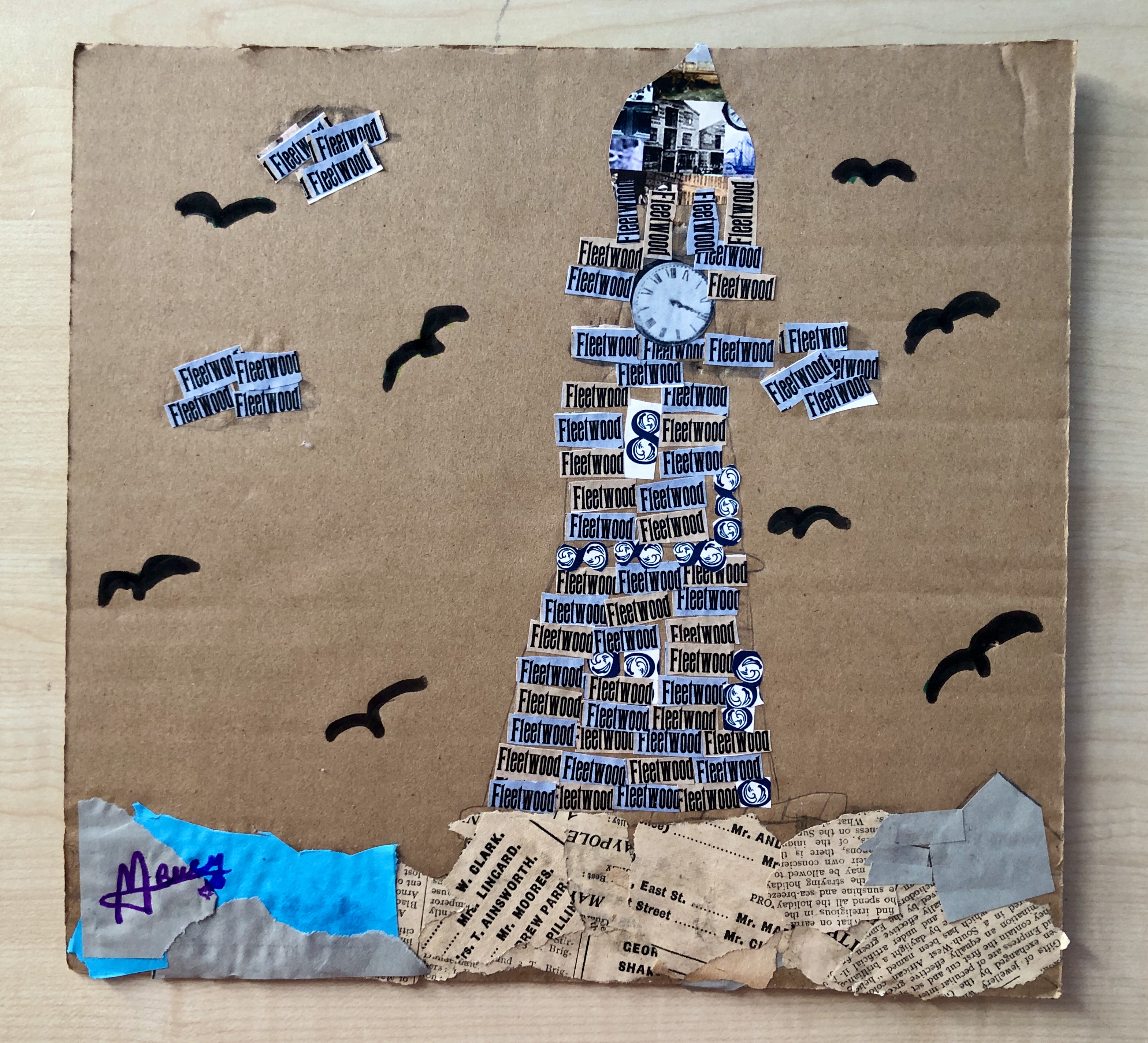 The inspiration for all the collaged art works created during the workshops was taken from Fleetwood’s own rich architectural history, the Fleetwood Museum and building at number 8 Queens Terrace and from ideas generated using materials pupils imagining their own museum buildings