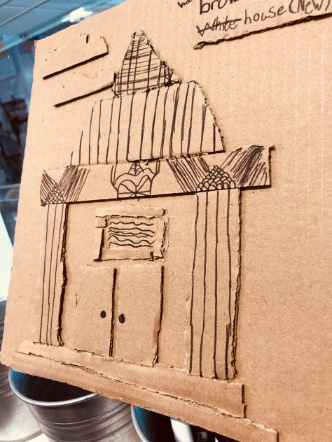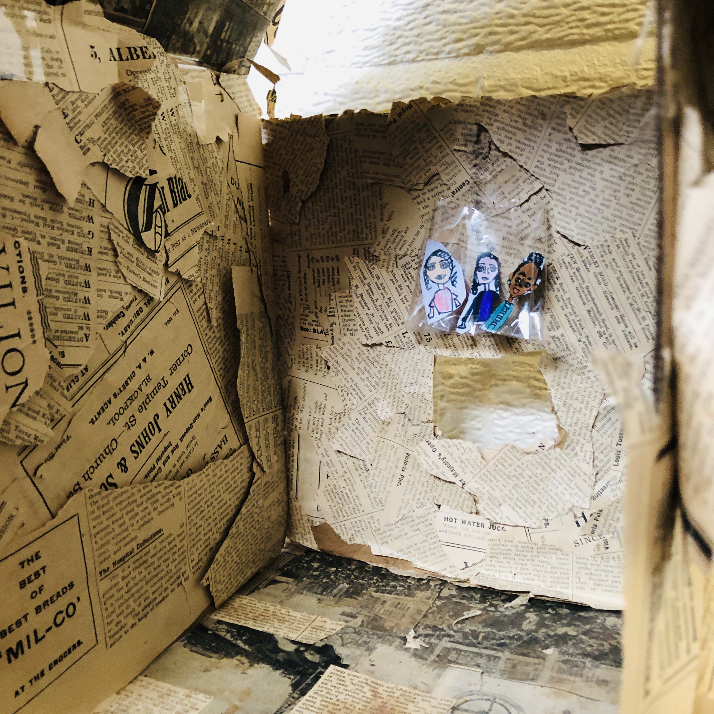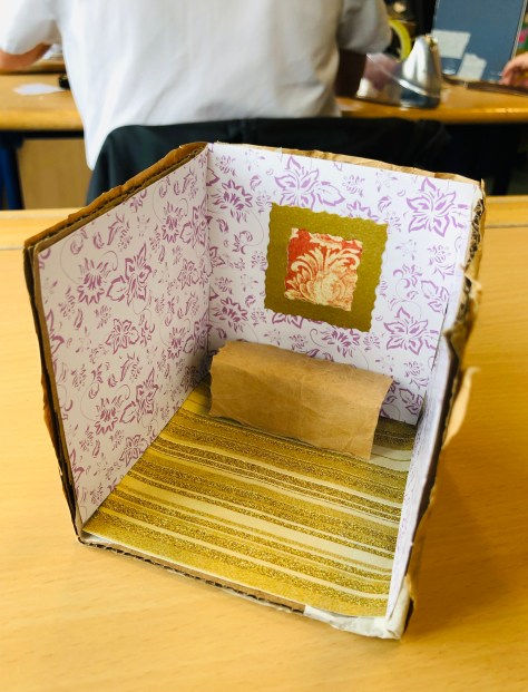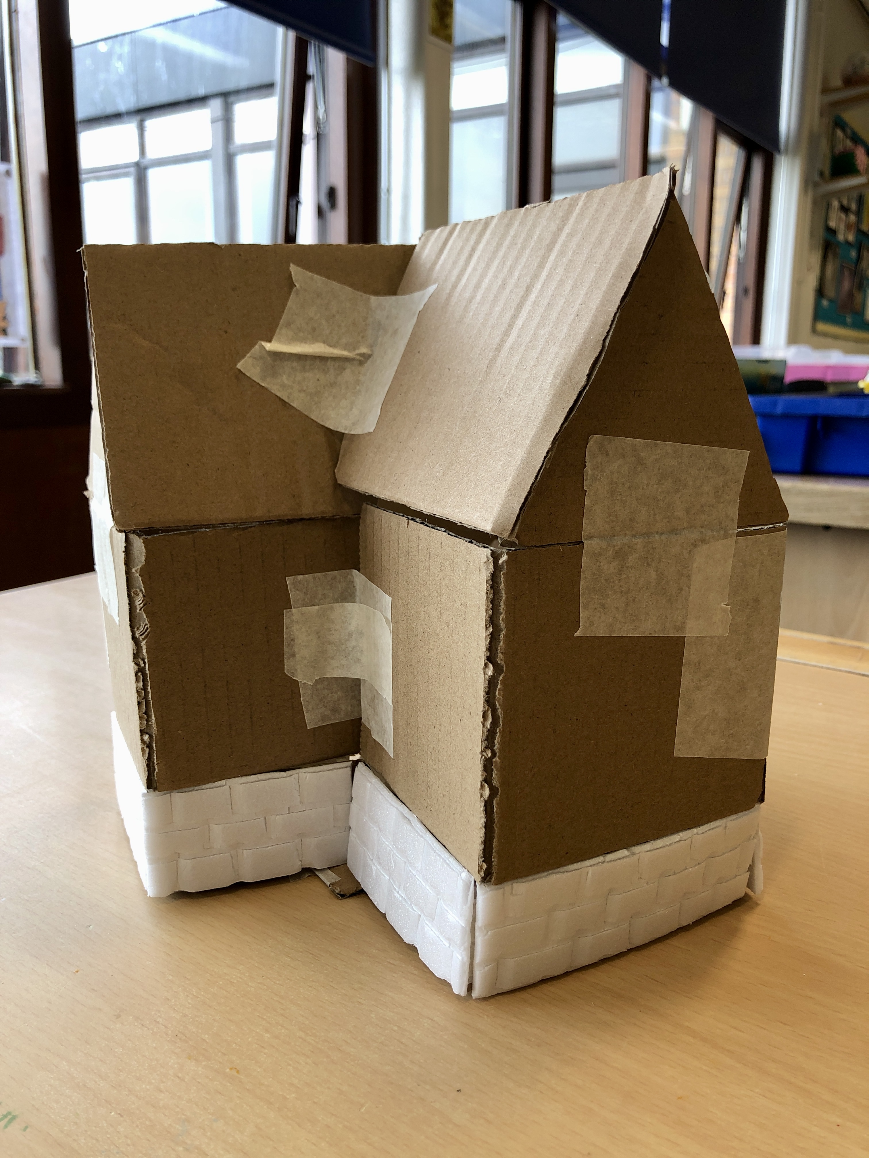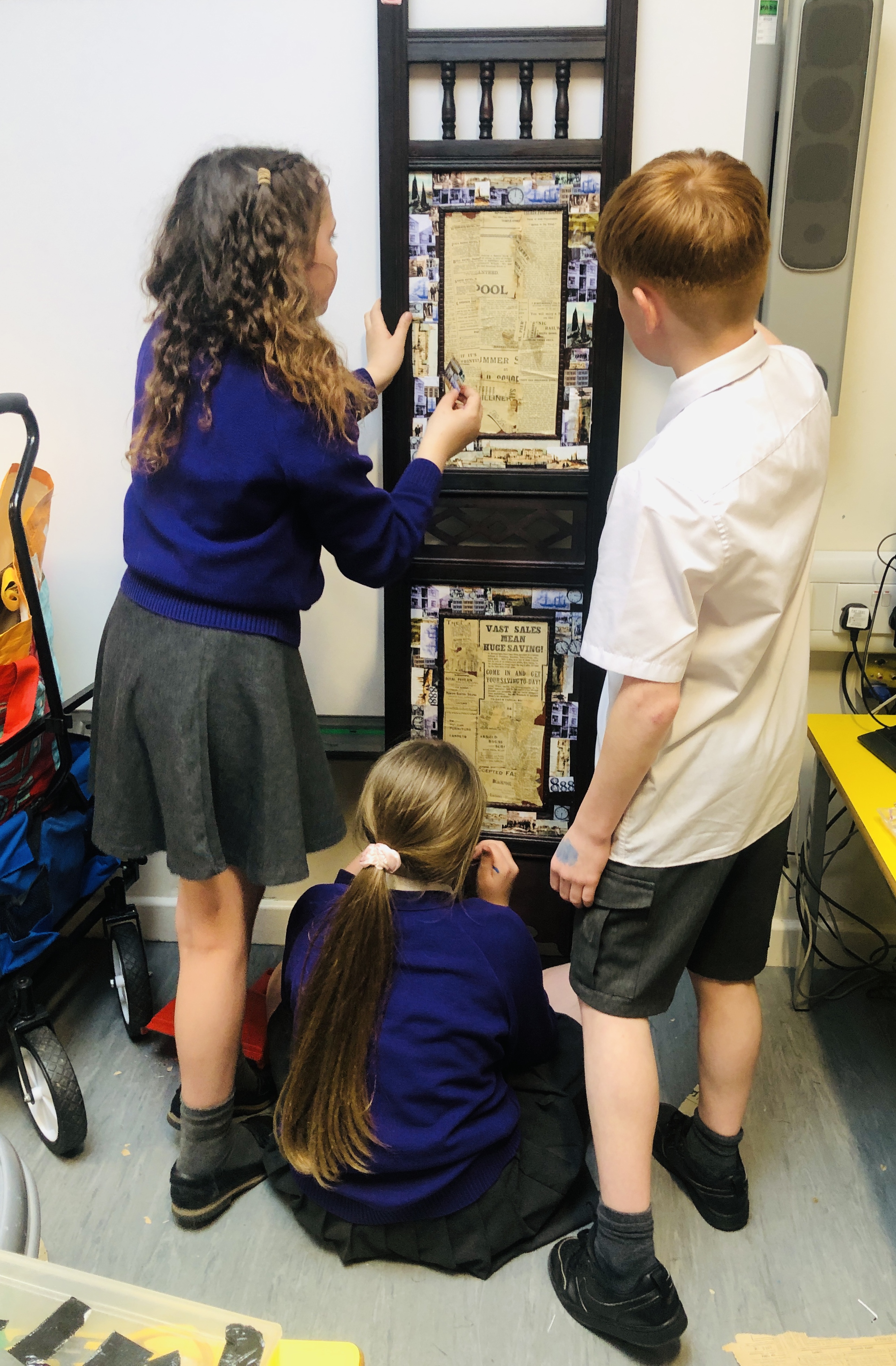 Below is the interior of a two storey building created by pupils using card and antique newspaper.