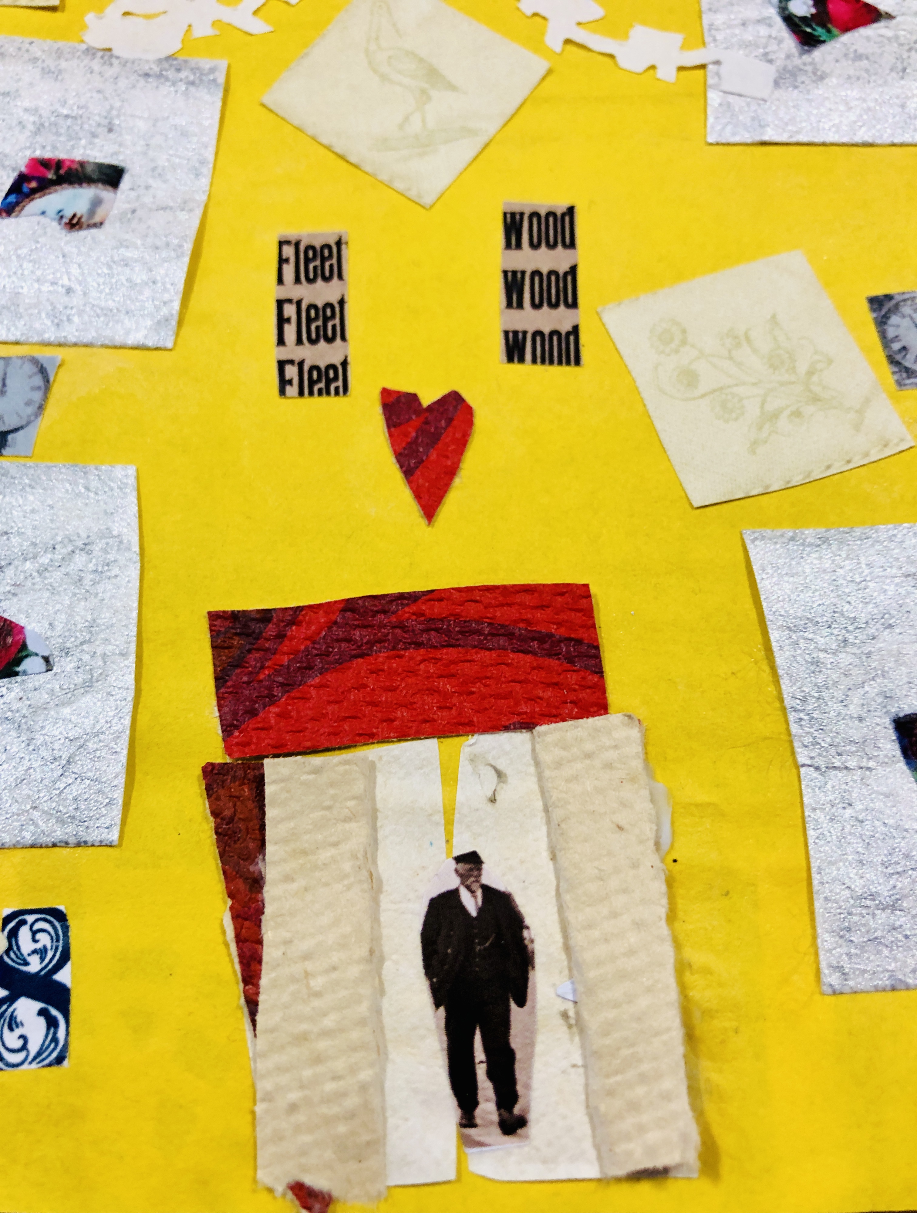 Historical Fleetwood inspired collage art work mixed media using recycled materials