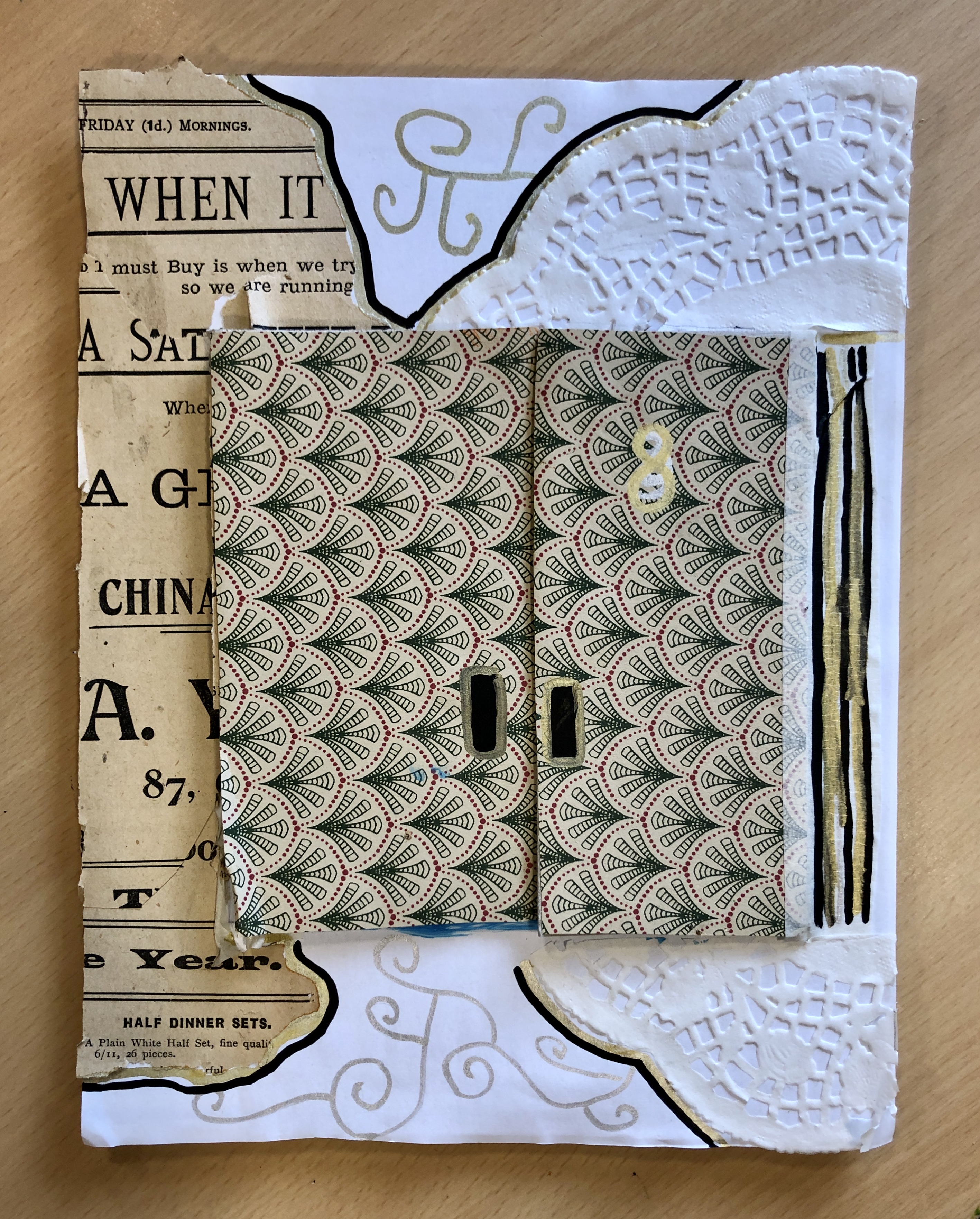 Historical museum 3D art work collage art work mixed media using recycled materials and Antique newspaper