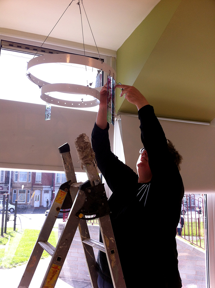 and includes work we did to create the glass chandelier with glass artists Colette Halstead and local residents