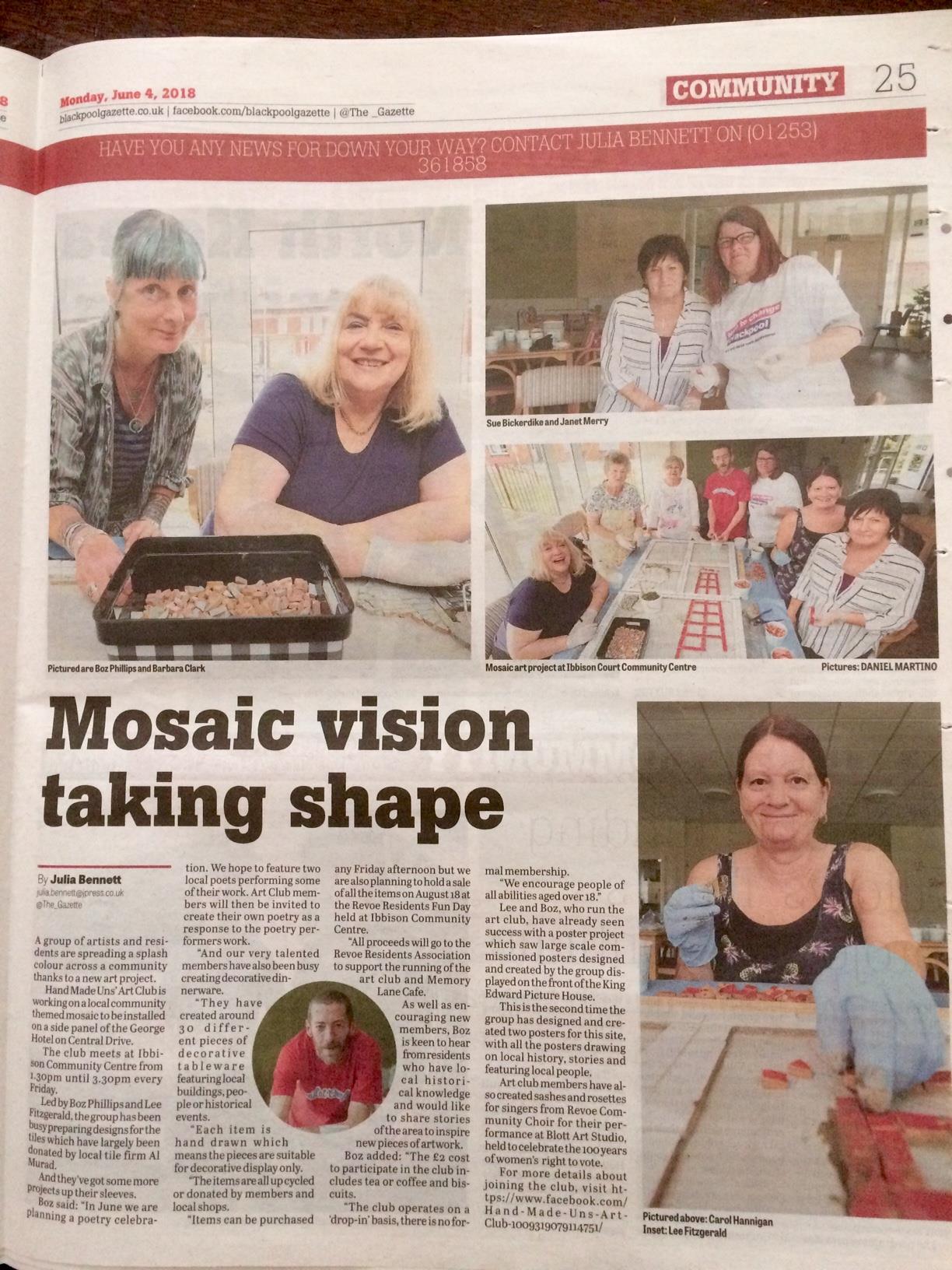 revoe hand made un’s make mosaic piece in blackpool gazette