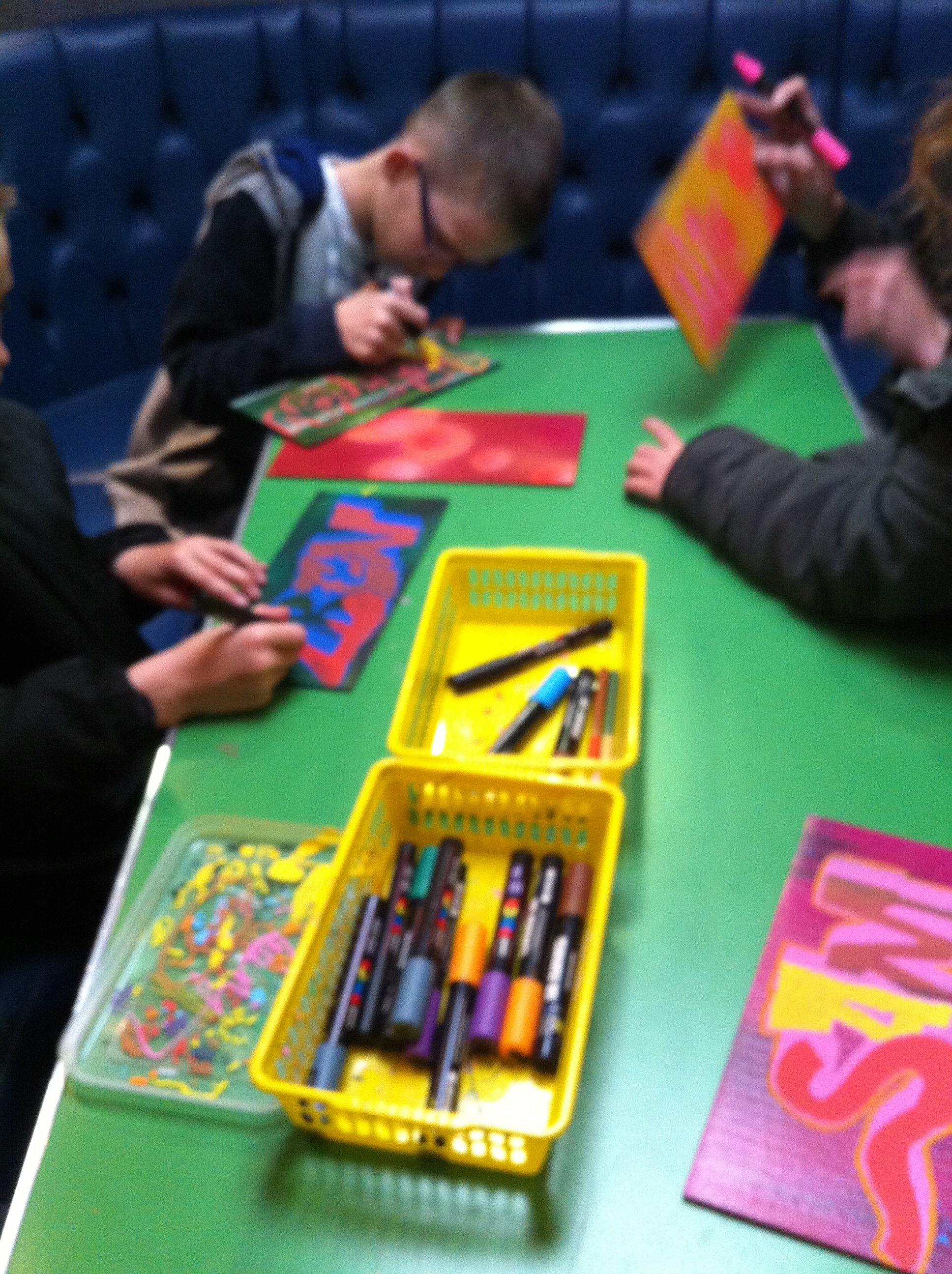 Community Arts Organisation, community engagement, graffiti signs, graffiti with kids, posca Club2Go activities across the Fylde May 2015 May 22, 2015 last legs Leave a comment