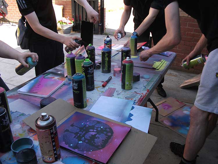 This month we have also been working with a group of young people who we hope to be creating a large scale mural with later this year. The group are keen to get involved in graffiti art work and this evening we tested their skills.