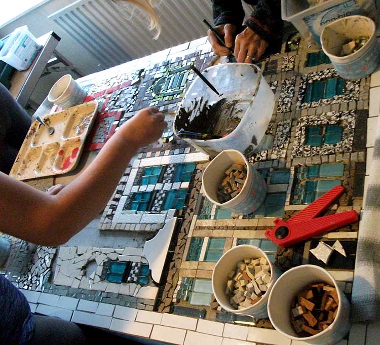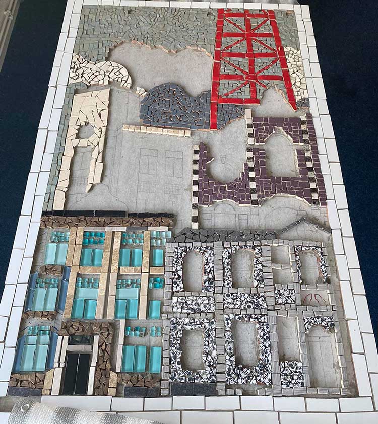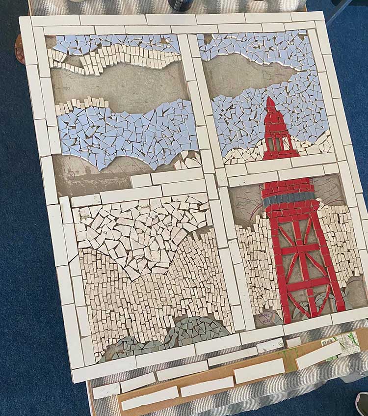 The mosaic is now finished and will be attached to a prominent wall in Revoe. We will upload photos when we can take a photo.