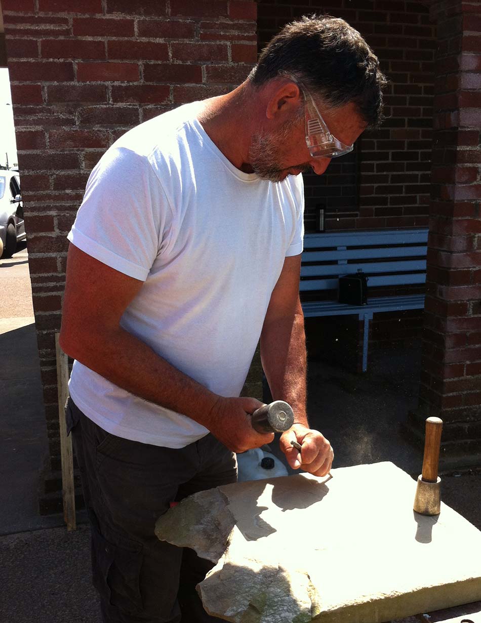 Anthony Lysycia the stone carver at work on one of the stone pieces.
